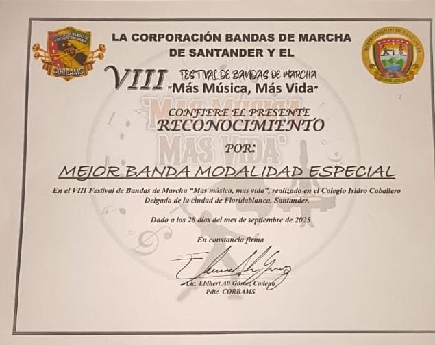 ¡Nuestra Banda Marcial Musical Brilla con Galardón en el VIII Festival "Más Música, Más Vida"!